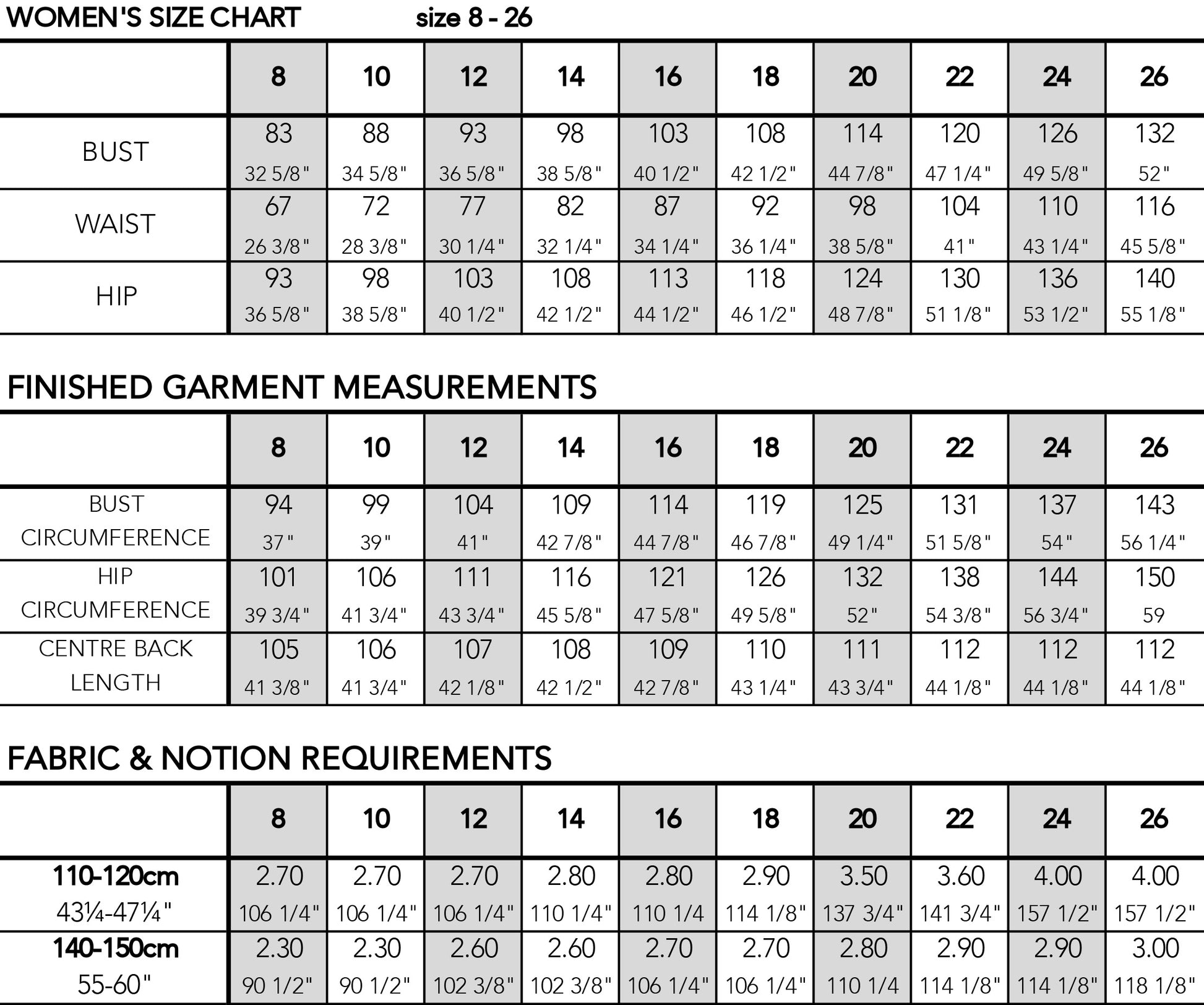TIME TO MAKE: As an estimate, this garment will take you 6-8 hours to make depending on your sewing confidence level. *It is suggested that you make a toile of this pattern in calico or muslin (or a fabric similar to what you have selected to use in the final garment) to personalize fit/length and practice sewing techniques.